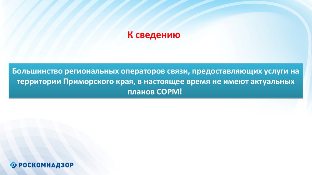 Управление Роскомнадзора по Приморскому краю«Реализация требований к сетям и средствам связи для проведения оперативно-разыскных