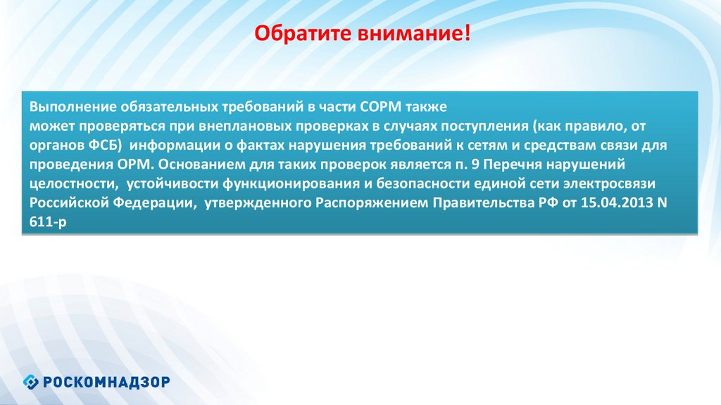 Обратите внимание!Выполнение обязательных требований в части СОРМ также