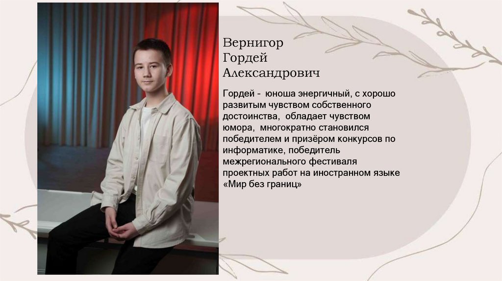 Гордей - юноша энергичный, с хорошо