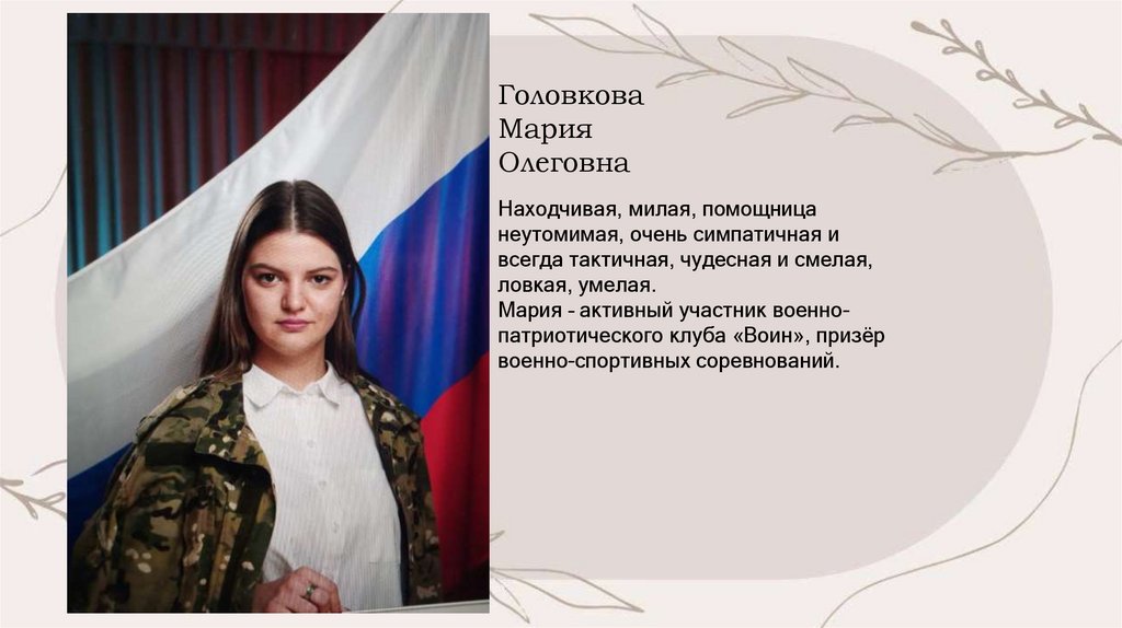 Мария – активный участник военнопатриотического клуба «Воин», призёр