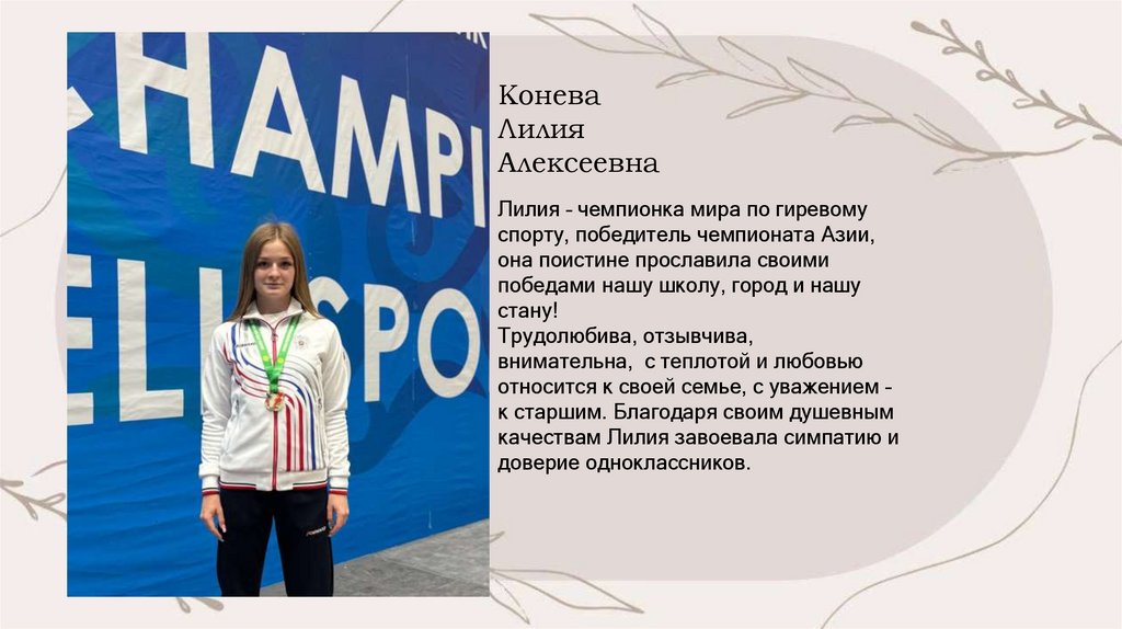 целеустремлённая. Лиза – призёр и