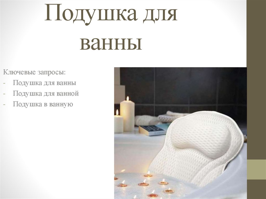 • По ключевому запросу “Подушка для ванны” Wildberriesпредлагает 237 товаров