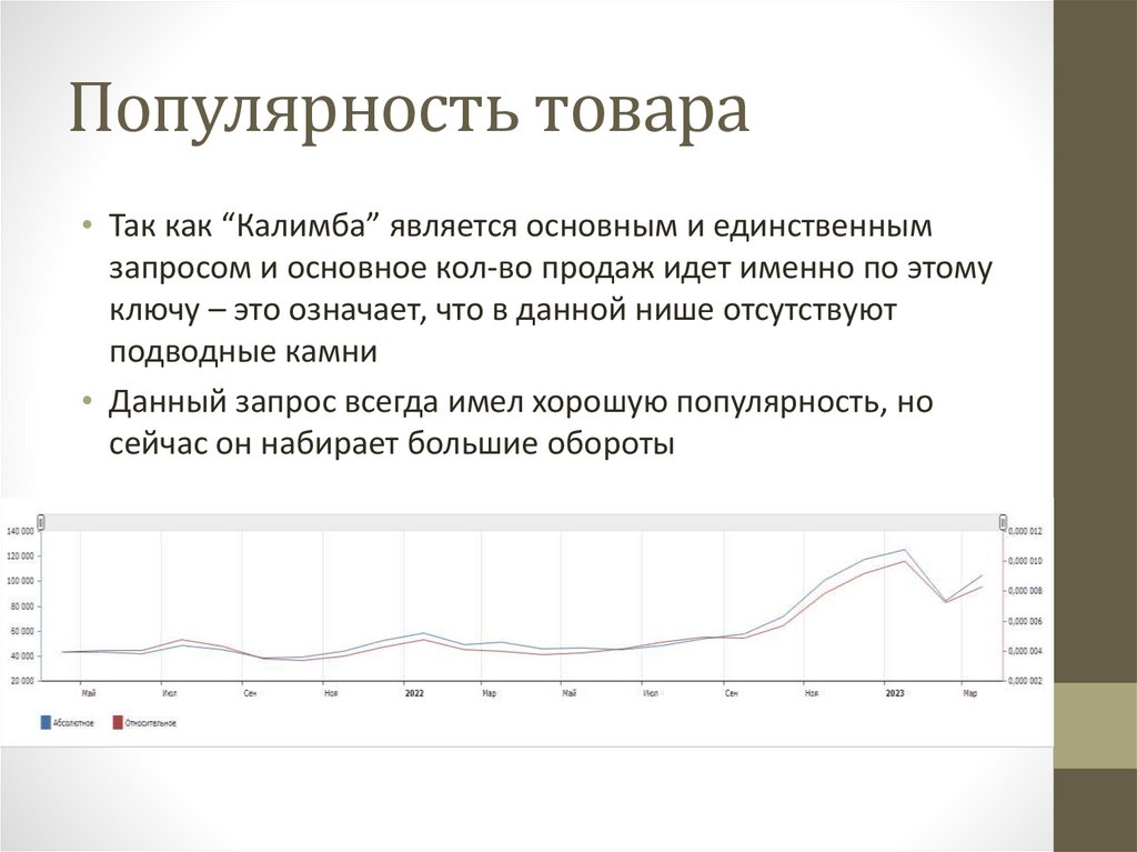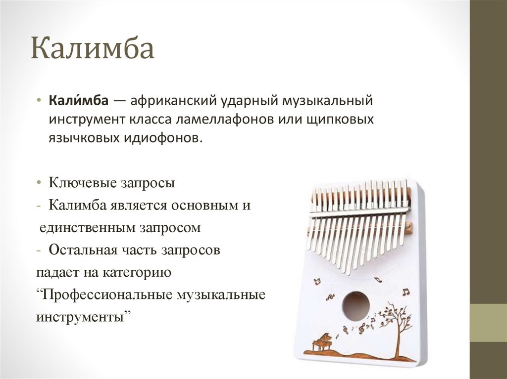 • Так как “Калимба” является основным и единственнымзапросом и основное кол-во продаж идет именно по этому