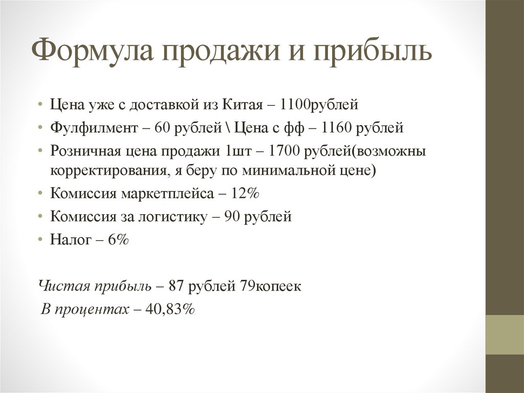 • Цена уже с доставкой из Китая – 440 рублей• Фулфилмент – 60 рублей