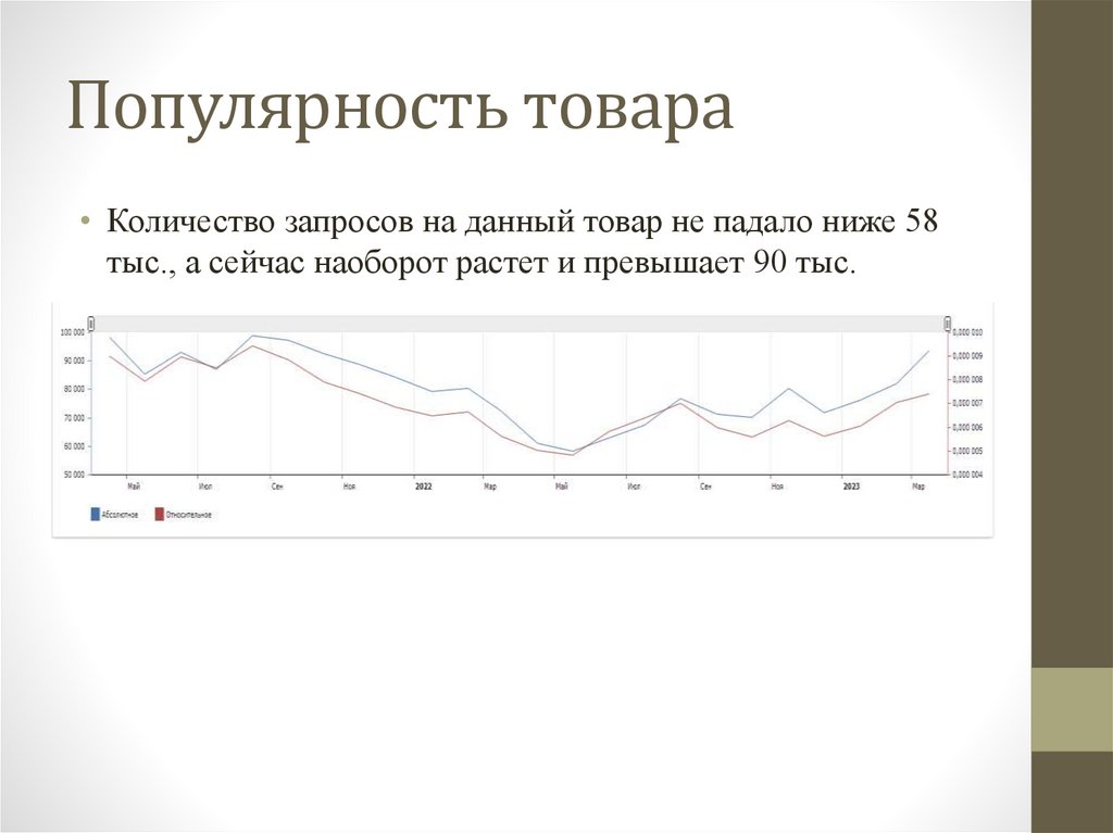 • Количество запросов на данный товар не падало ниже 58тыс., а сейчас наоборот растет и превышает 90 тыс.