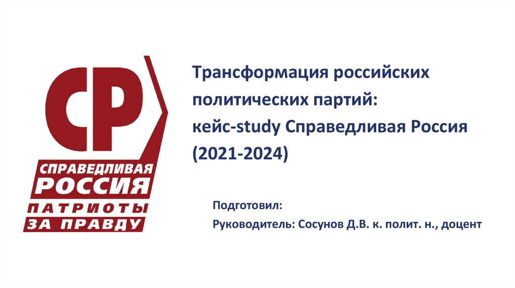 1. Партия «Справедливая Россия» (ныне СРЗП) прошла сложный путь трансформации,отражая общие тенденции развития российской партийной системы – от проекта