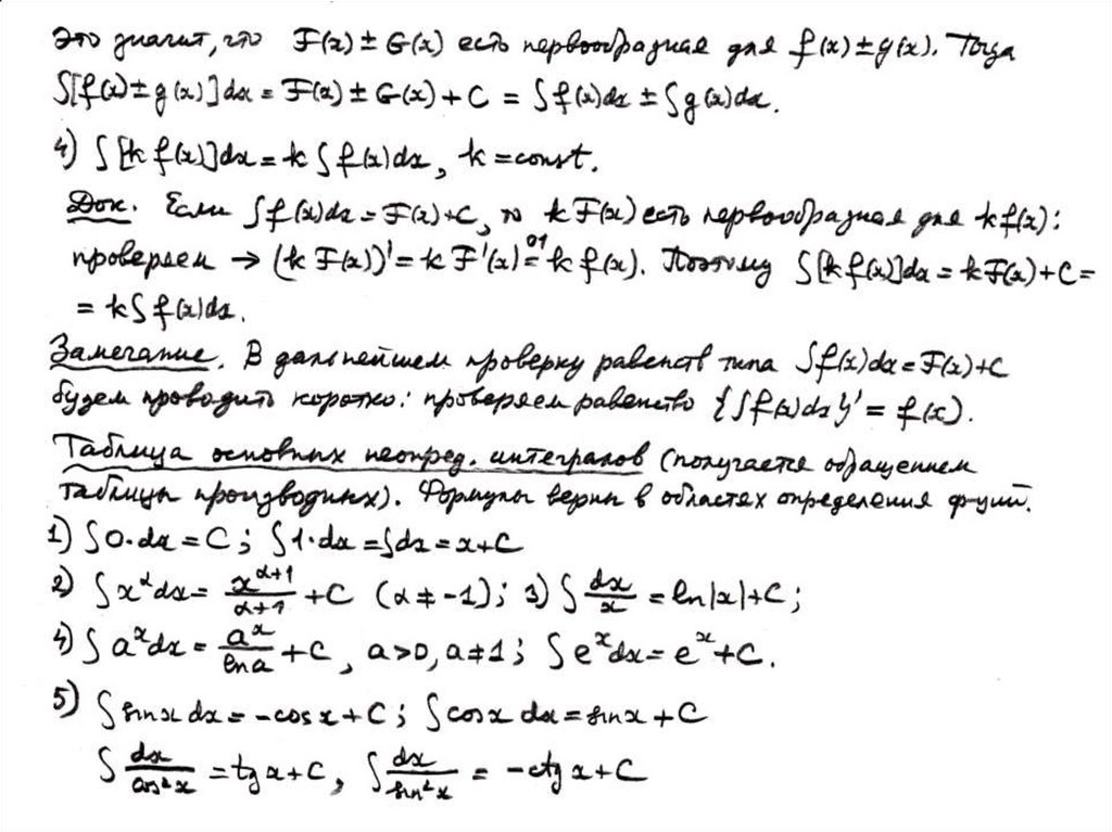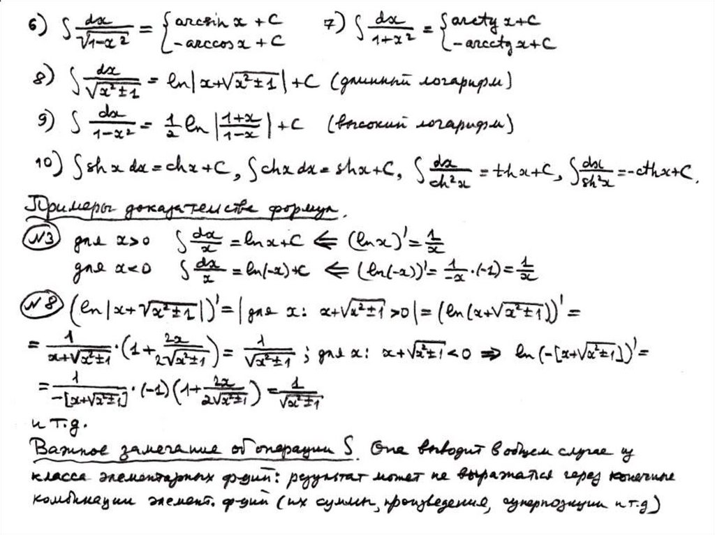 Неопределенный интеграл. Математический анализ. 1 курс, 2-й семестр