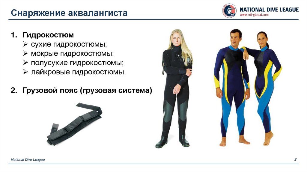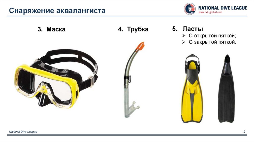 Снаряжение аквалангистаNational Dive League