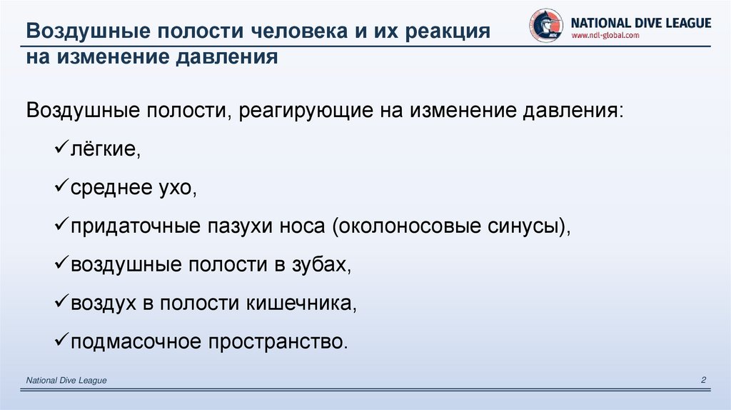 Воздушные полости человека и их реакцияна изменение давления