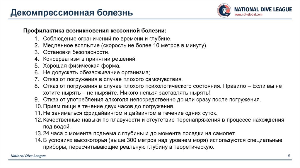 Декомпрессионная болезньПрофилактика возникновения кессонной болезни: