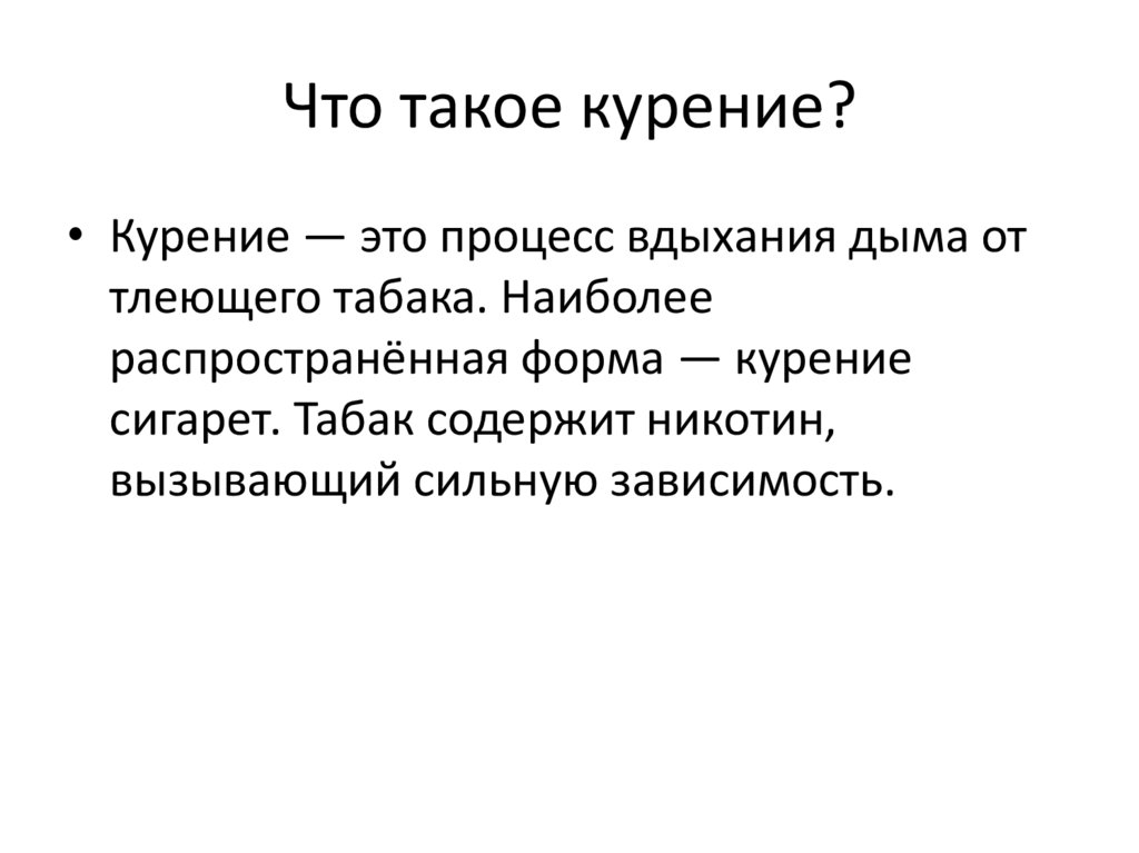 Что такое курение?• Курение — это процесс вдыхания дыма от