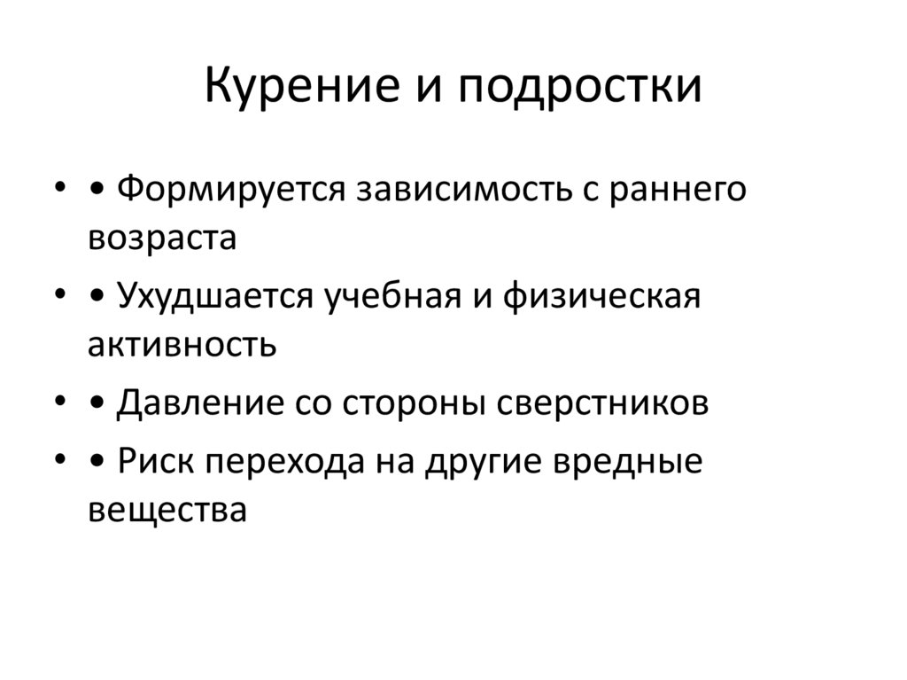 Курение и подростки• • Формируется зависимость с раннего