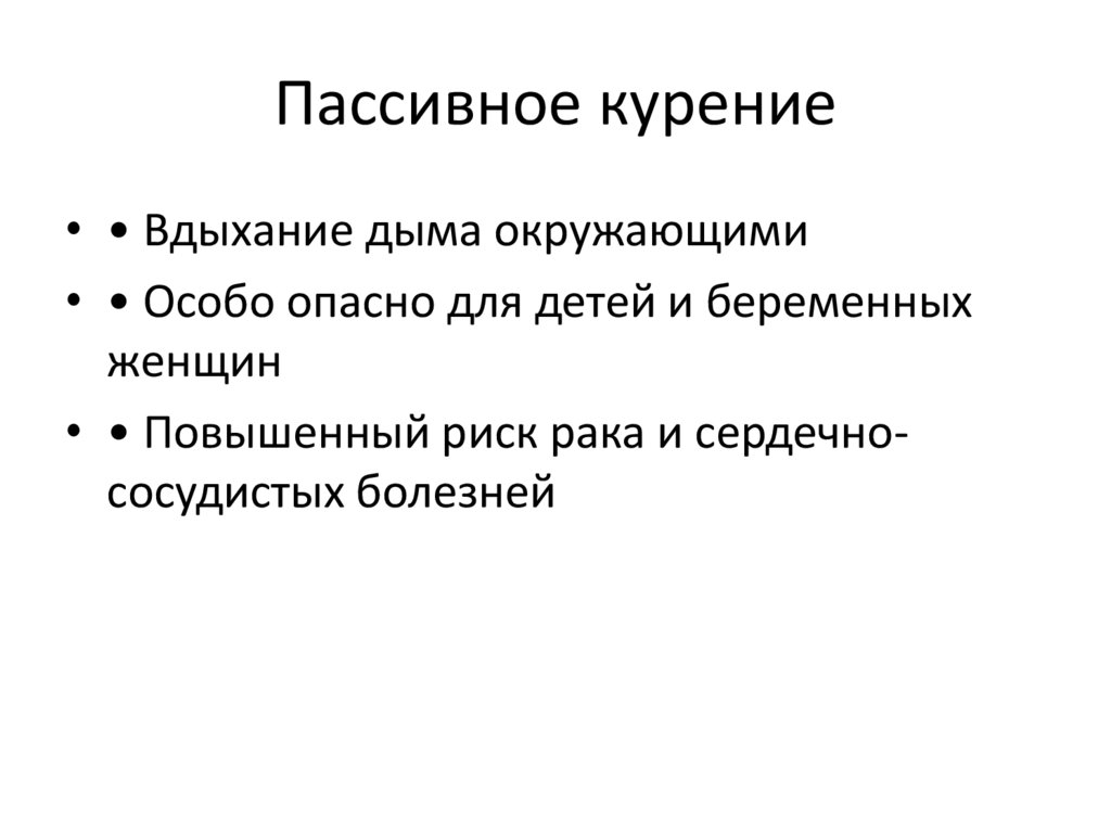Пассивное курение• • Вдыхание дыма окружающими