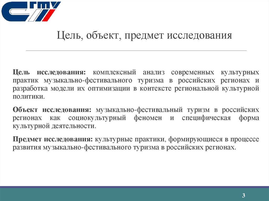 Цель, объект, предмет исследованияЦель исследования: комплексный анализ современных культурных