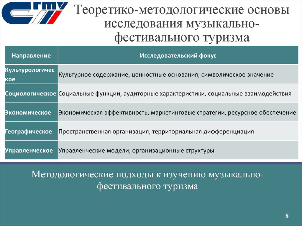 Теоретико-методологические основыисследования музыкальнофестивального туризма