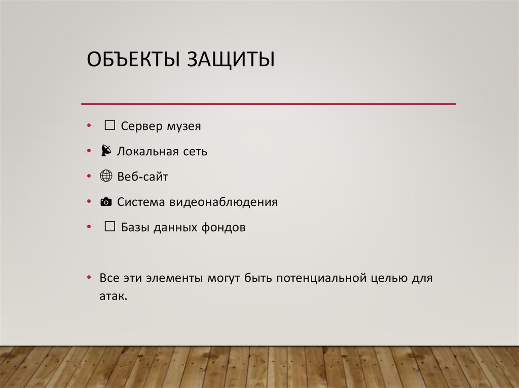 ОБЪЕКТЫ ЗАЩИТЫ• Сервер музея