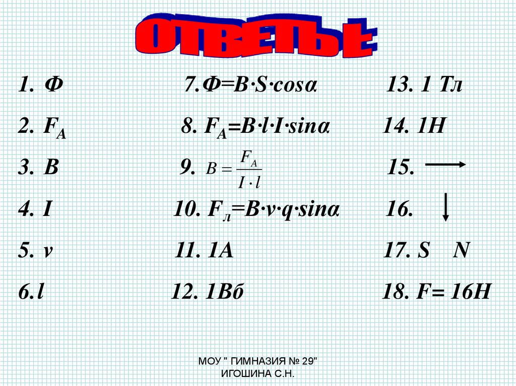 Fл=B∙v∙q∙sinαМОУ " ГИМНАЗИЯ № 29"