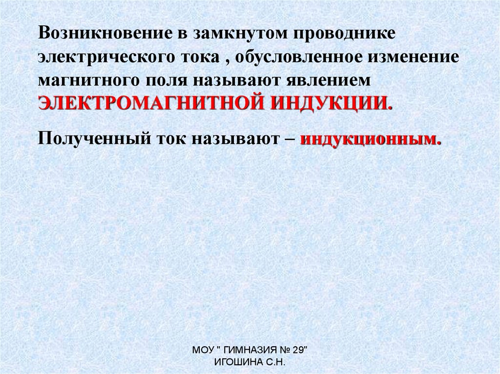 Возникновение в замкнутом проводникеэлектрического тока , обусловленное изменение