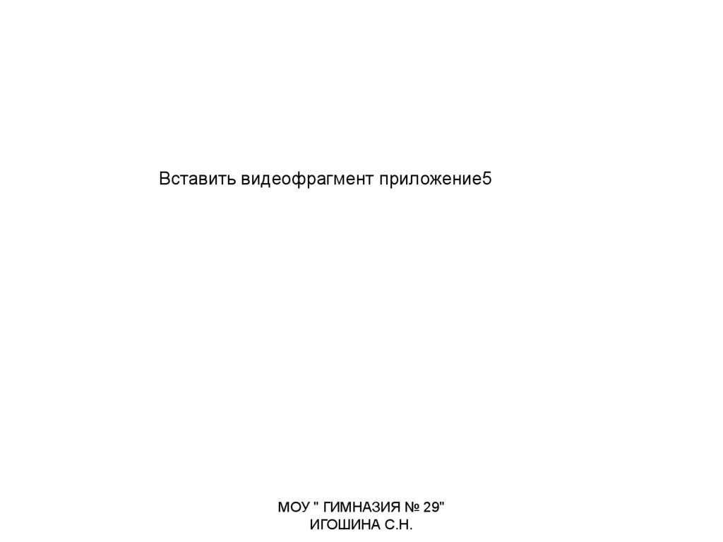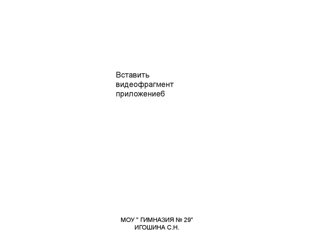 Вставить видеофрагмент приложение5МОУ " ГИМНАЗИЯ № 29"