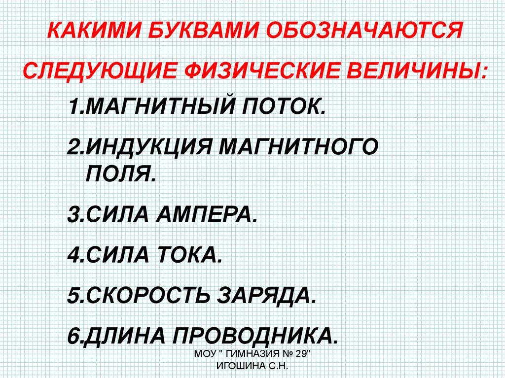 КАКИМИ БУКВАМИ ОБОЗНАЧАЮТСЯСЛЕДУЮЩИЕ ФИЗИЧЕСКИЕ ВЕЛИЧИНЫ: