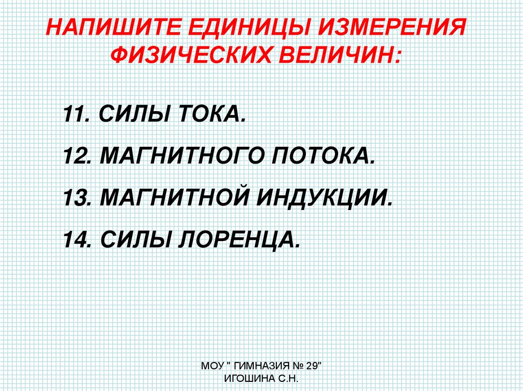 НАПИШИТЕ ЕДИНИЦЫ ИЗМЕРЕНИЯФИЗИЧЕСКИХ ВЕЛИЧИН: