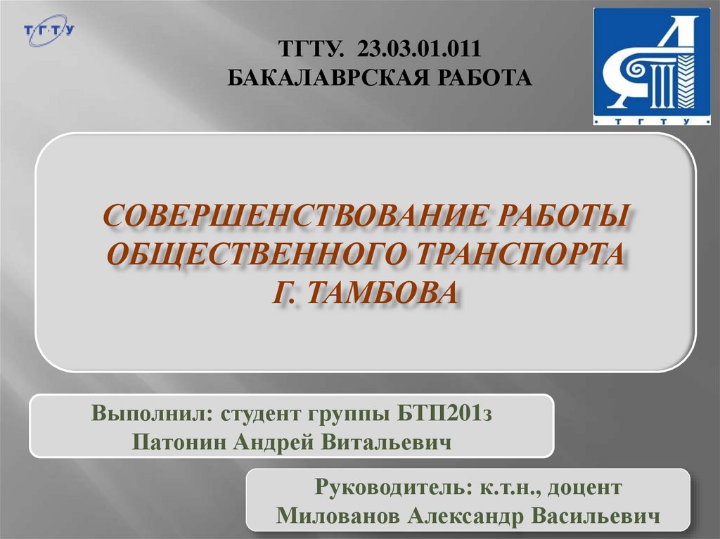 ТГТУ. 23.03.01.011БАКАЛАВРСКАЯ РАБОТА