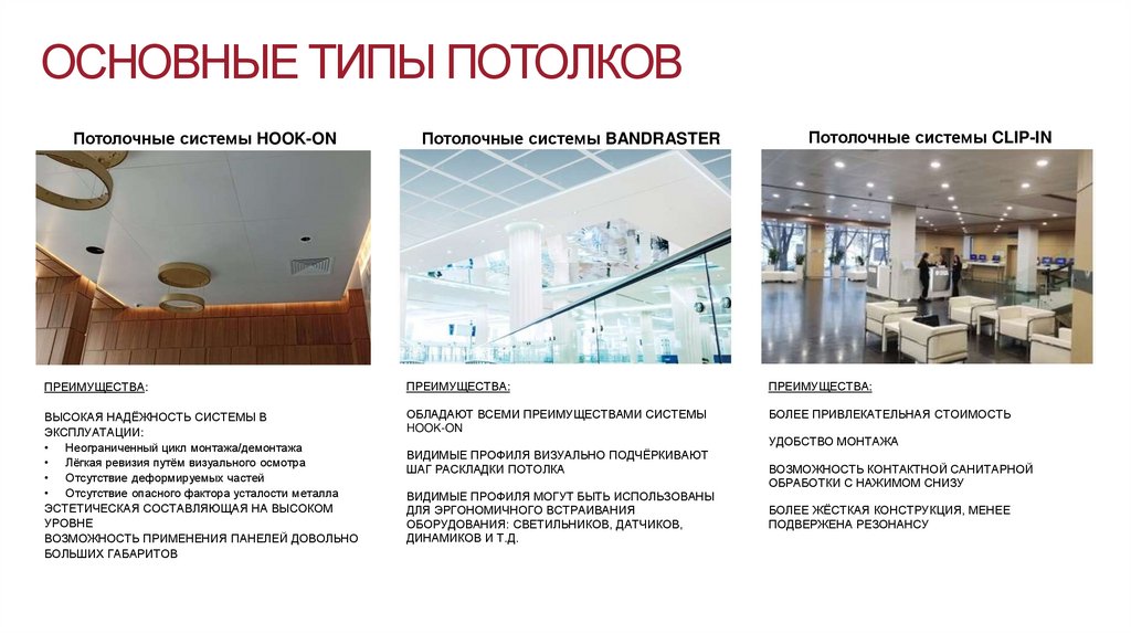 ОСНОВНЫЕ ТИПЫ ПОТОЛКОВПотолочные системы HOOK-ON