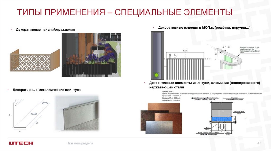 ТИПЫ ПРИМЕНЕНИЯ – СПЕЦИАЛЬНЫЕ ЭЛЕМЕНТЫДекоративные панели/ограждения