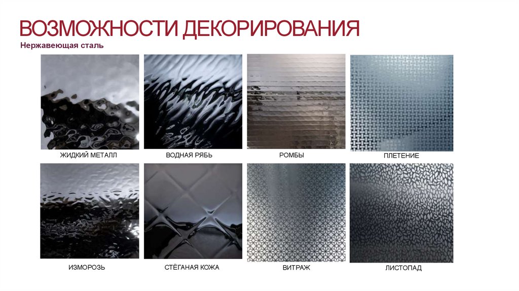 ВОЗМОЖНОСТИ ДЕКОРИРОВАНИЯНержавеющая сталь