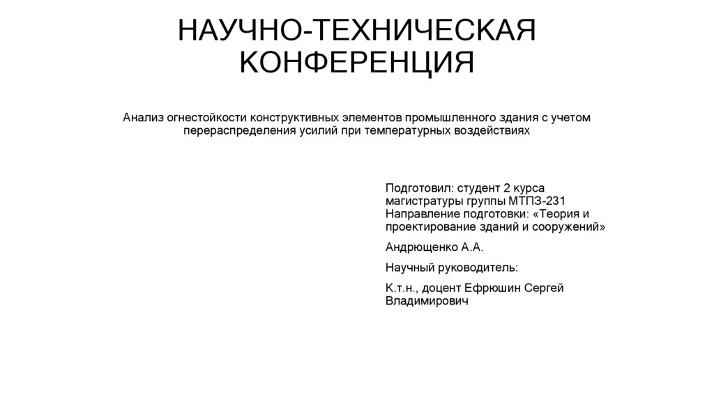 1. НАУЧНО-ТЕХНИЧЕСКАЯ КОНФЕРЕНЦИЯ Анализ огнестойкости конструктивных элементов промышленного здания с учетом перераспределения