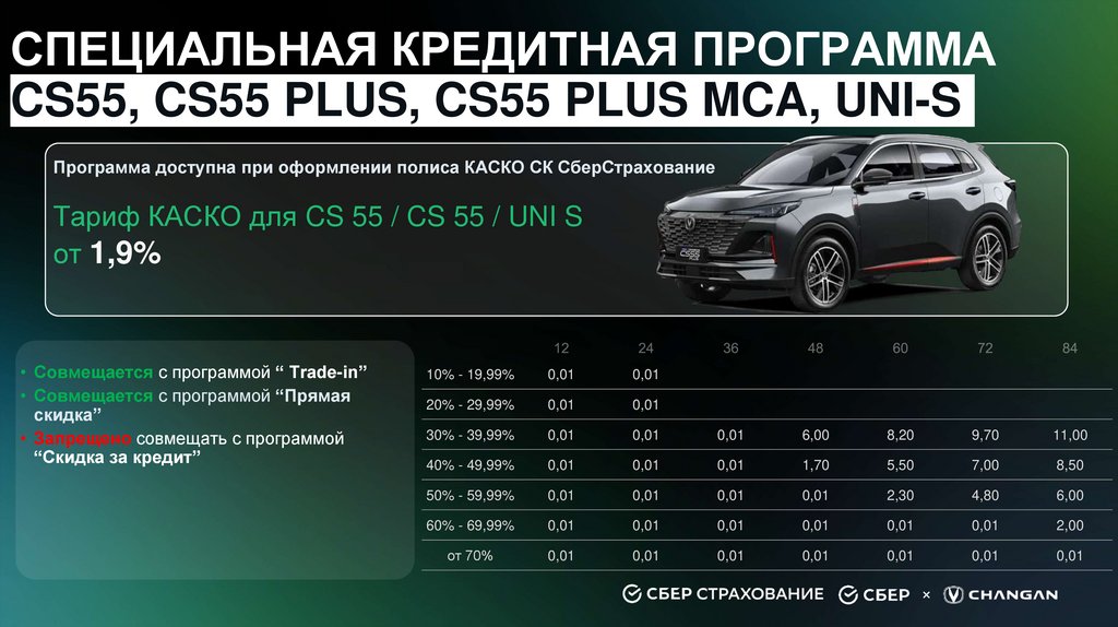 СПЕЦИАЛЬНАЯ КРЕДИТНАЯ ПРОГРАММАCS55, CS55 PLUS, CS55 PLUS MCA, UNI-S