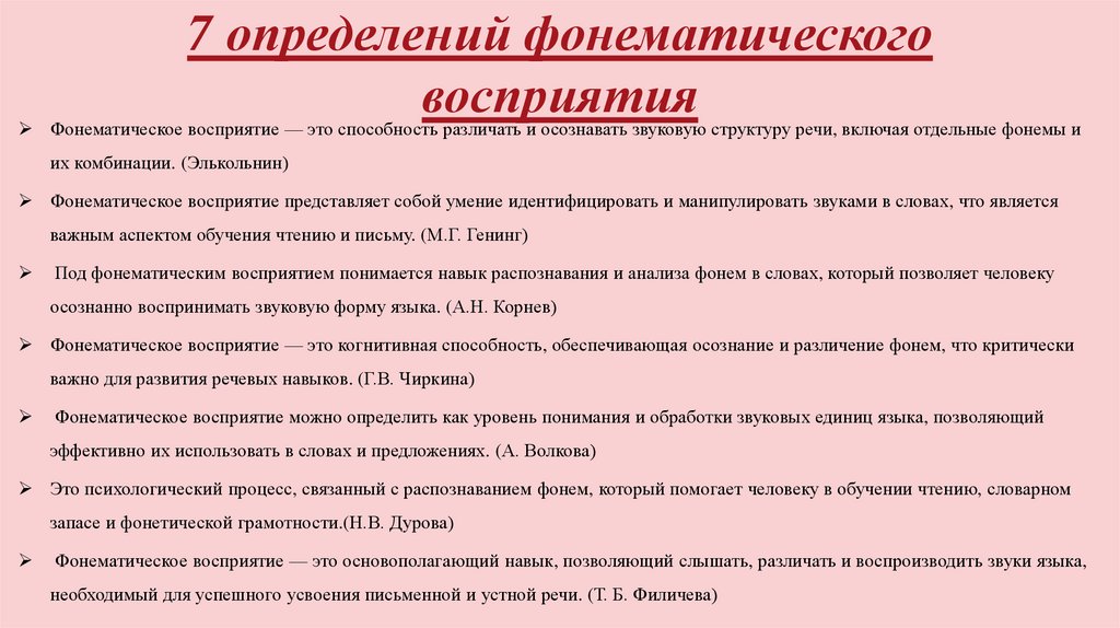 Фонематическое восприятие можно определить как уровень понимания и обработки звуковых единиц языка, позволяющий