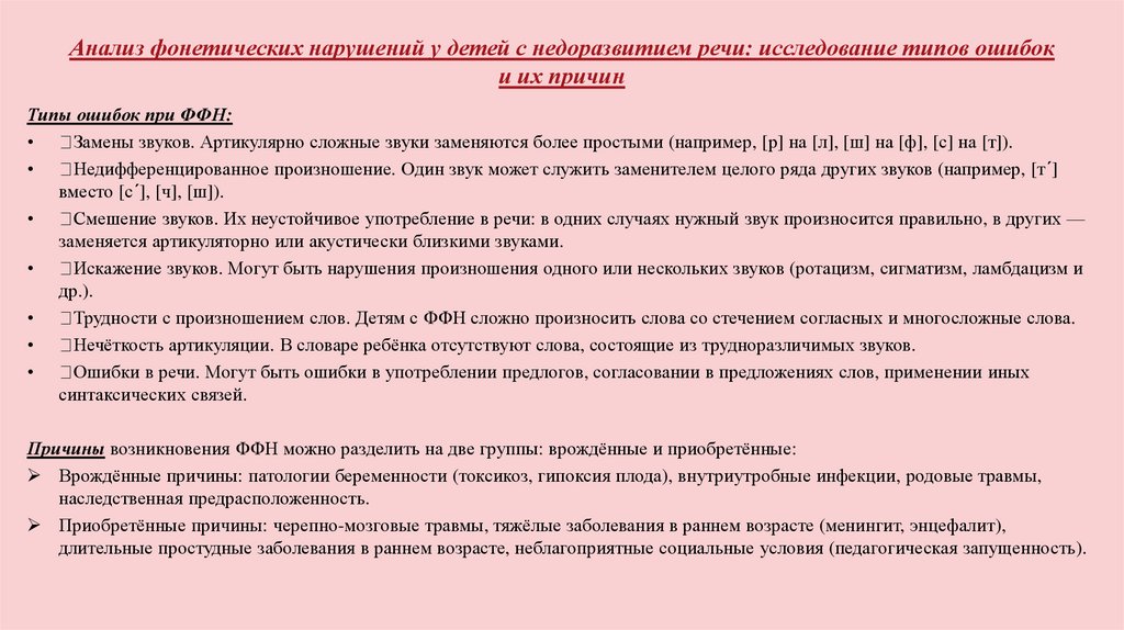 Анализ фонетических нарушений у детей с недоразвитием речи: исследование типов ошибоки их причин