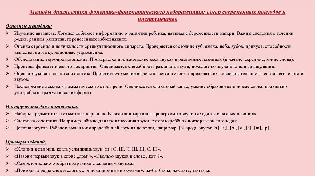 Методы диагностики фонетико-фонематического недоразвития: обзор современных подходов и инструментов