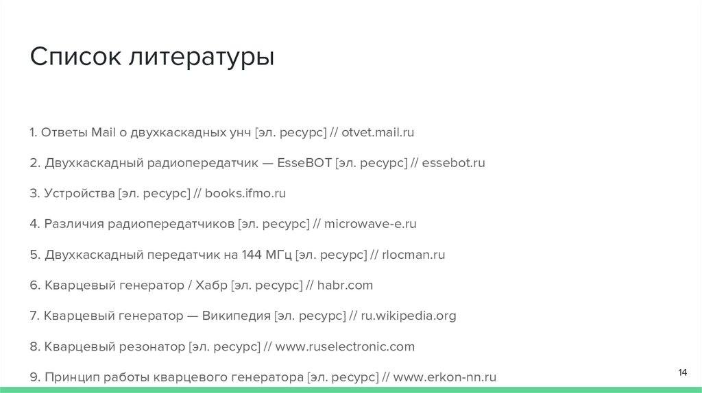 Список литературы1. Ответы Mail о двухкаскадных унч [эл. ресурс] // otvet.mail.ru