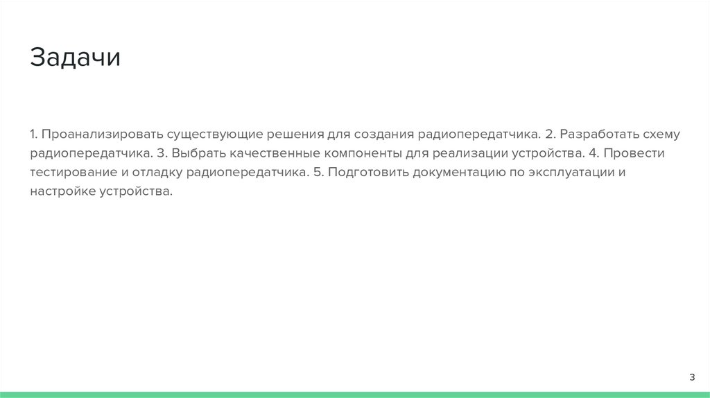 Задачи1. Проанализировать существующие решения для создания радиопередатчика. 2. Разработать схему