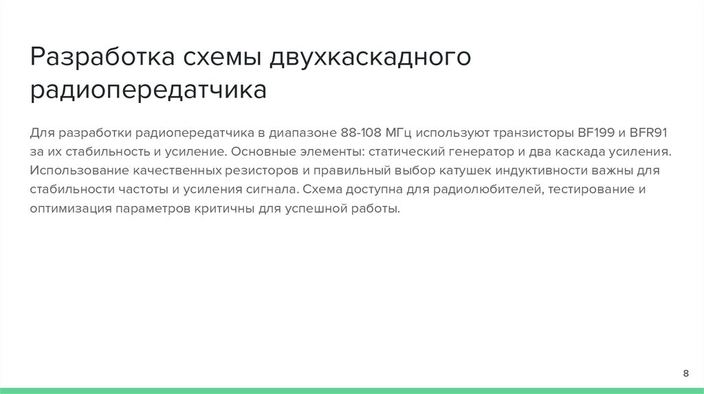 ЦельСоздание двухкаскадного радиопередатчика для надежного радиоуправления.