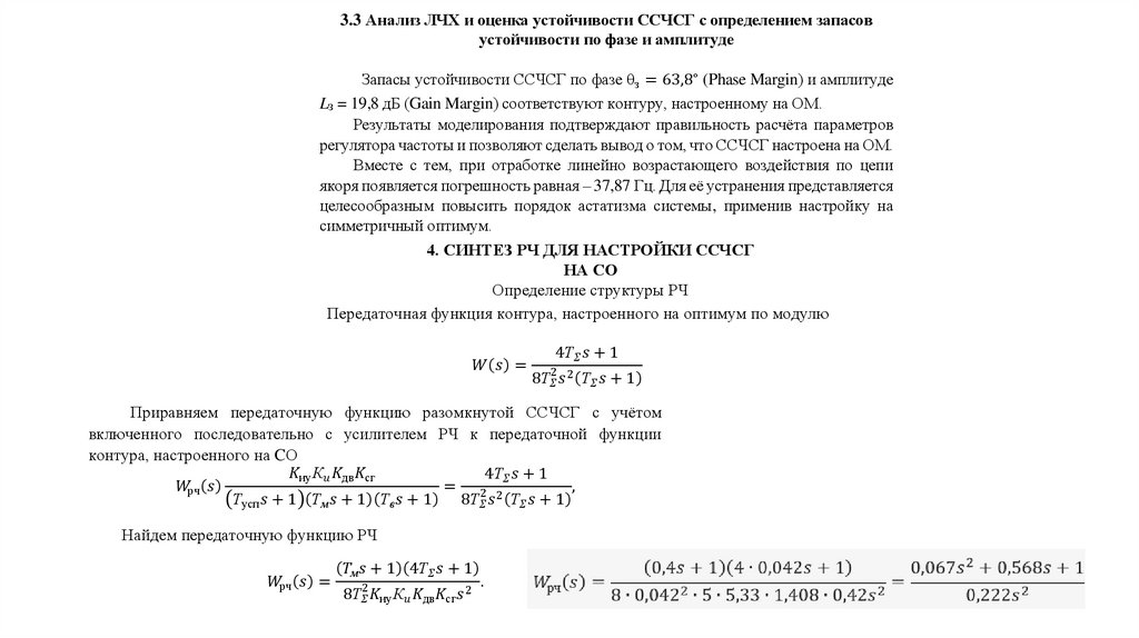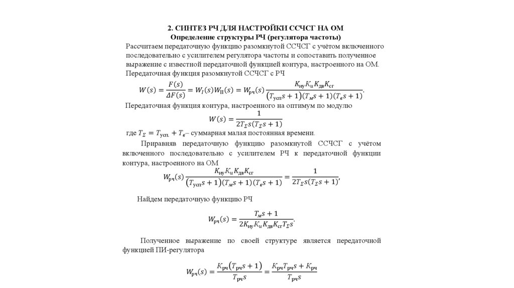 2. СИНТЕЗ РЧ ДЛЯ НАСТРОЙКИ ССЧСГ НА ОМОпределение структуры РЧ (регулятора частоты)