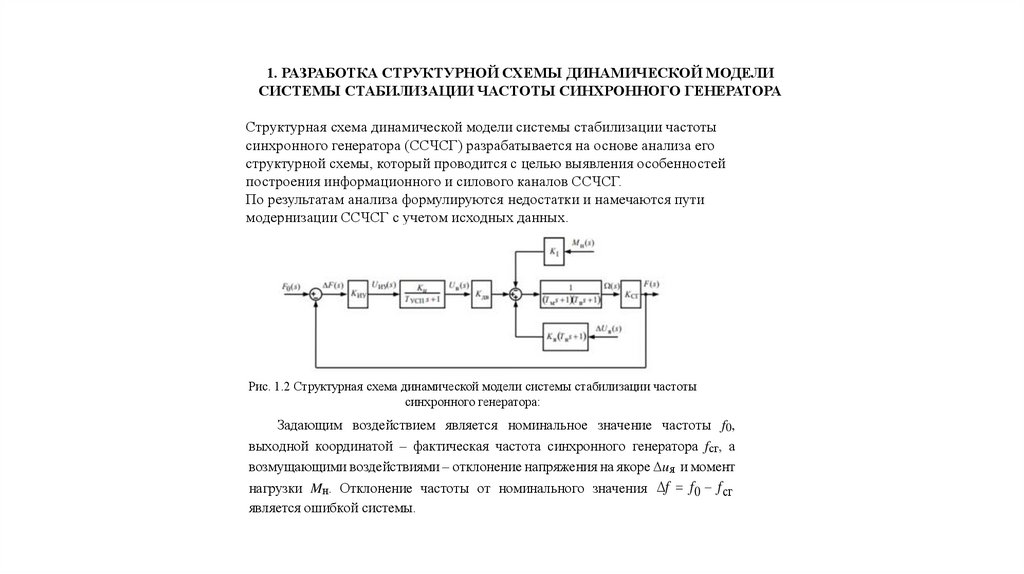 1. РАЗРАБОТКА СТРУКТУРНОЙ СХЕМЫ ДИНАМИЧЕСКОЙ МОДЕЛИСИСТЕМЫ СТАБИЛИЗАЦИИ ЧАСТОТЫ СИНХРОННОГО ГЕНЕРАТОРА