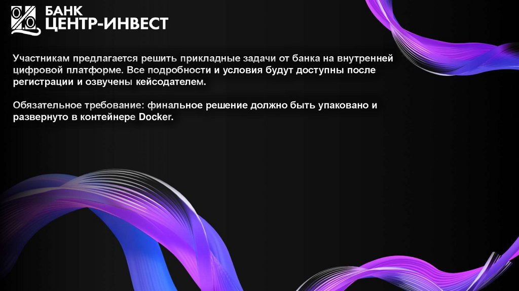 Участникам предлагается решить прикладные задачи от банка на внутреннейцифровой платформе. Все подробности и условия будут доступны после
