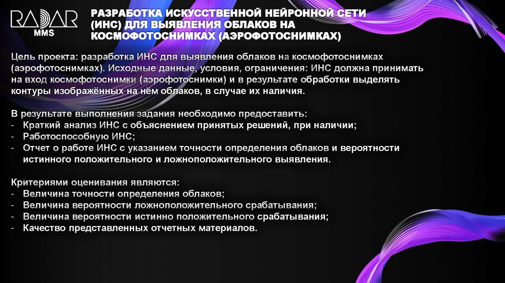 Цель проекта: разработка ИНС для выявления облаков на космофотоснимках