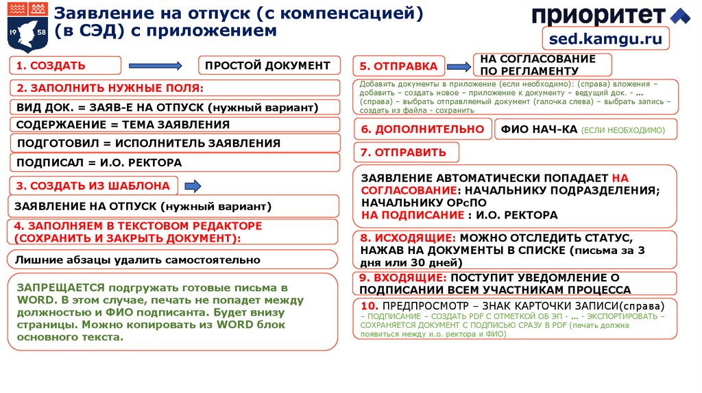 1. Заявление на отпуск (с компенсацией) (в СЭД) с приложением