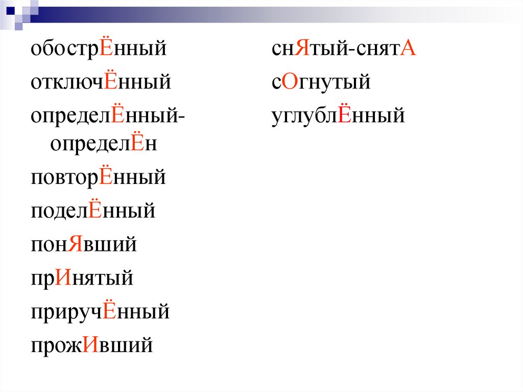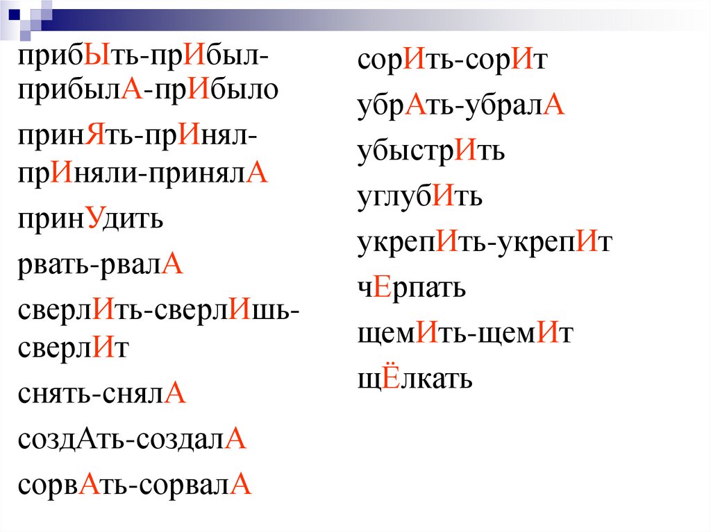 прибЫть-прИбылприбылА-прИбылопринЯть-прИнялпрИняли-принялА