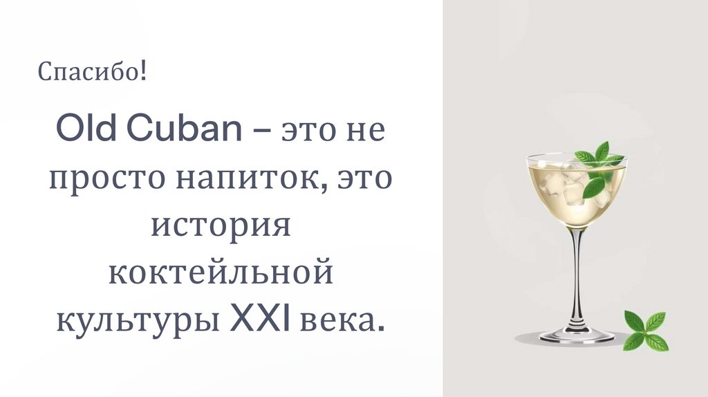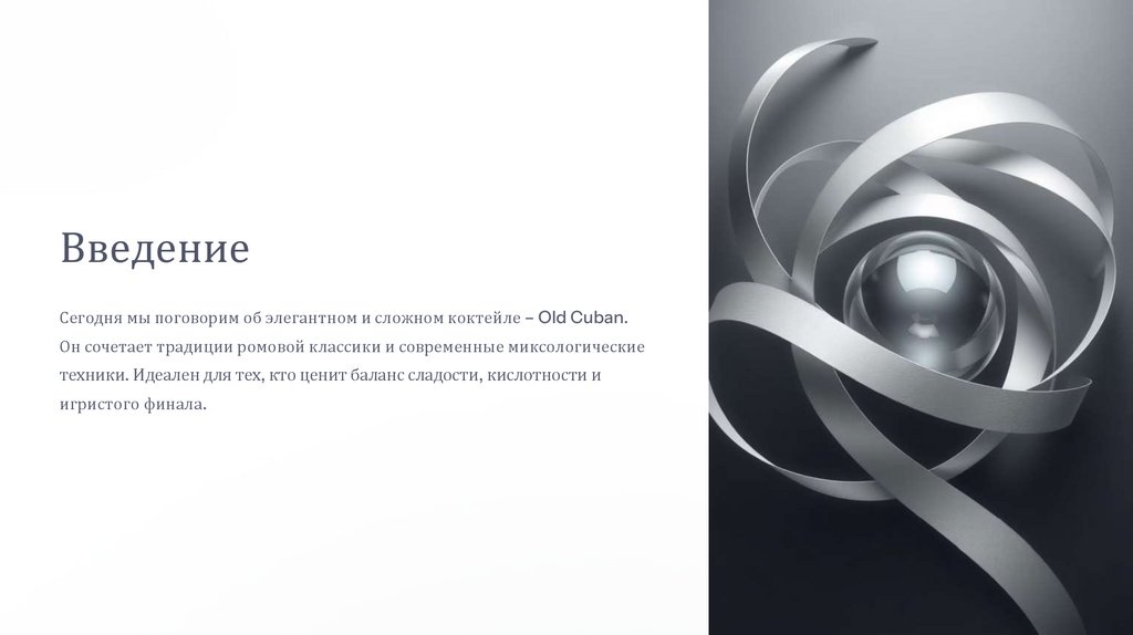 ВведениеСегодня мы поговорим об элегантном и сложном коктейле – Old Cuban.