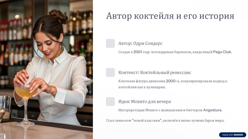 Автор коктейля и его историяАвтор: Одри Сондерс