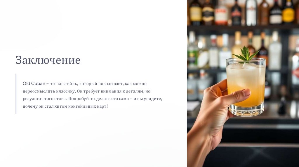ЗаключениеOld Cuban – это коктейль, который показывает, как можно