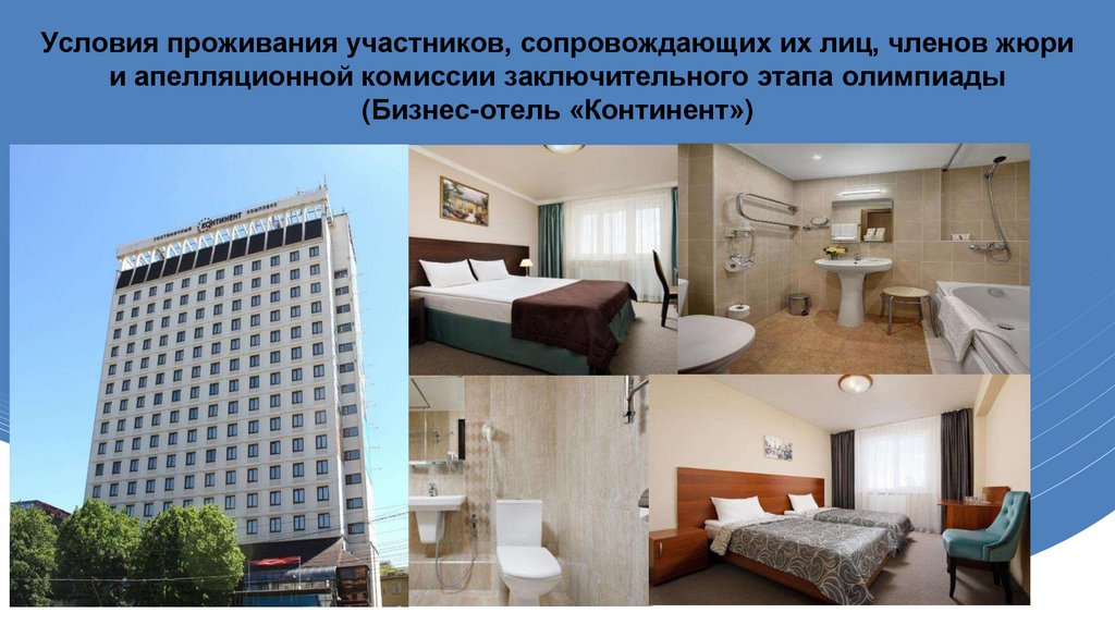Условия проживания участников, сопровождающих их лиц, членов жюрии апелляционной комиссии заключительного этапа олимпиады