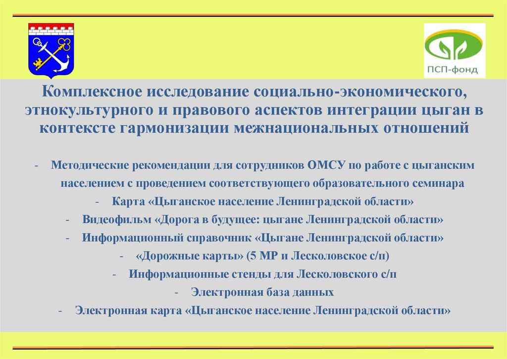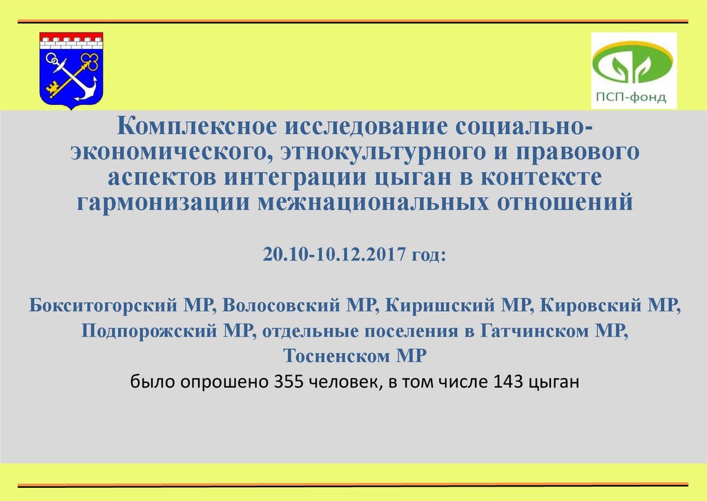 Комплексное исследование социальноэкономического, этнокультурного и правовогоаспектов интеграции цыган в контексте
