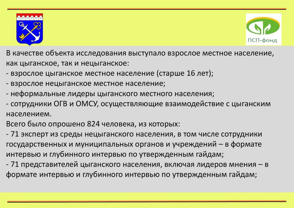 В качестве объекта исследования выступало взрослое местное население,как цыганское, так и нецыганское: