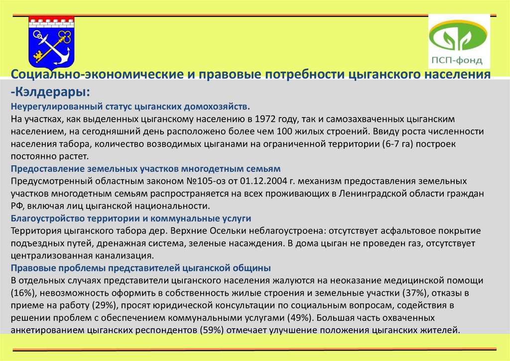 анкетированием цыганских респондентов (59%) отмечает улучшение положения цыганских жителей.